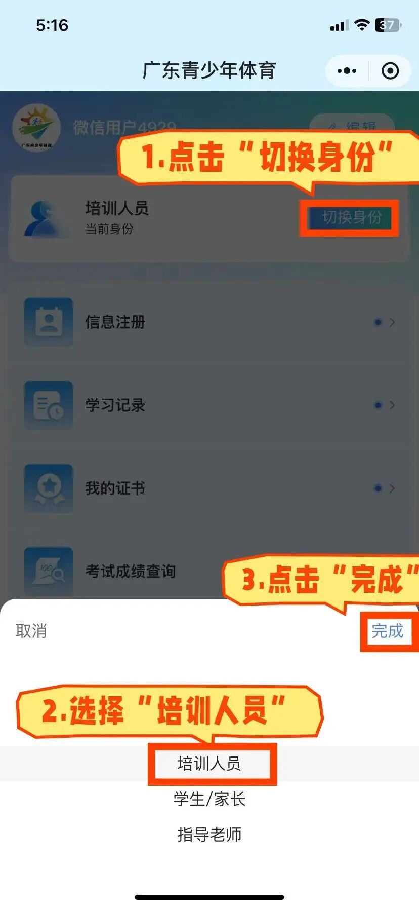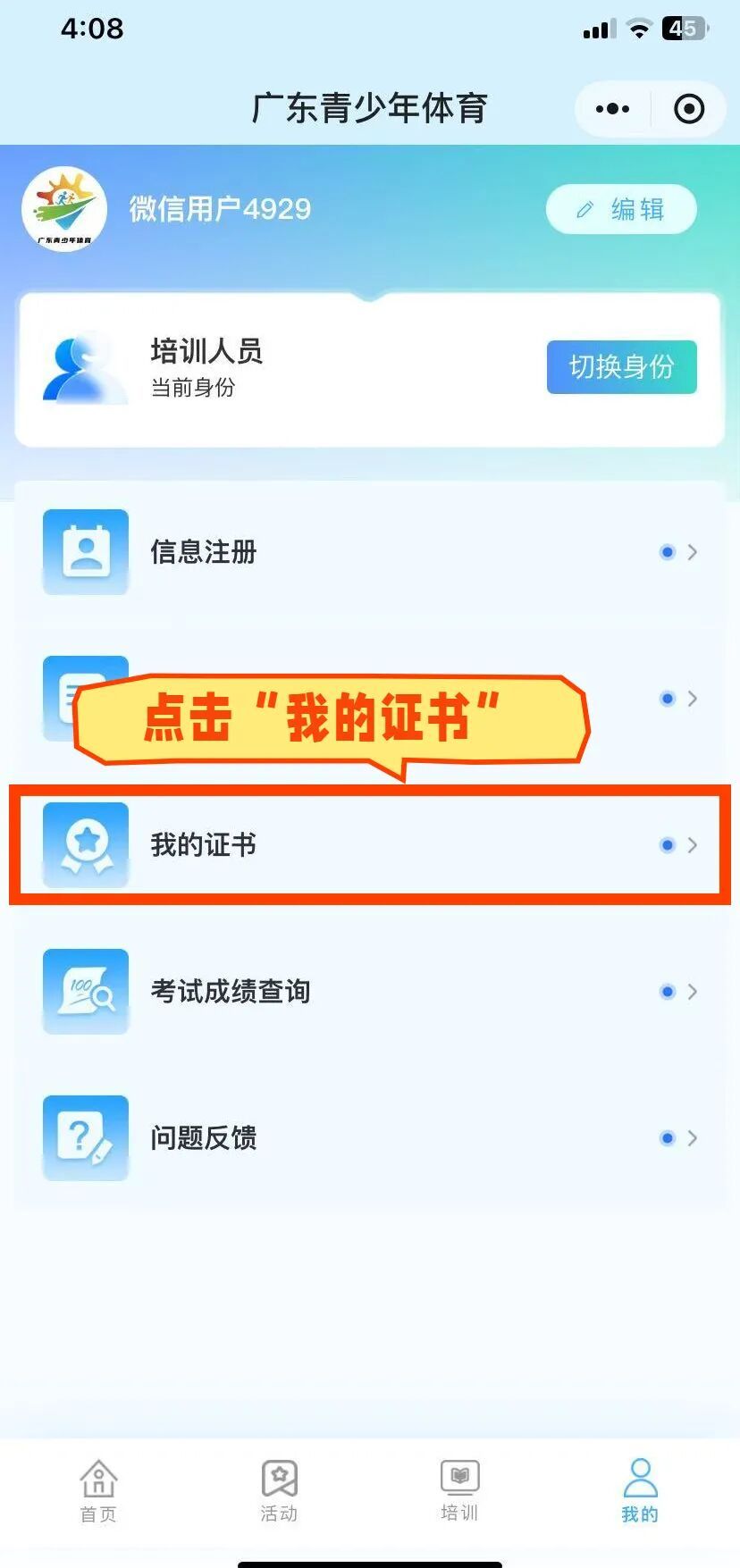 登录成功后→点击【切换身份】→选择【培训人员】富邦配资。